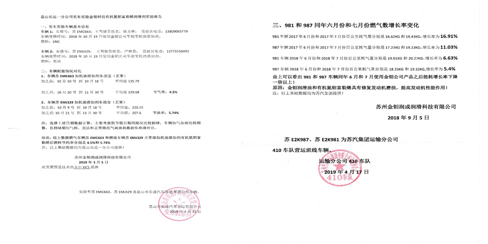 有機(jī)氮鉬富勒烯和非硫磷有機(jī)鉬,自從投入市場(chǎng)以來(lái),受到普遍認(rèn)可和廣泛應(yīng)用,目前國(guó)內(nèi)有大約100家左右的潤(rùn)滑油企業(yè)、品牌作為高端、高性能潤(rùn)滑油的核心配方,大量使用,并出口美國(guó)、歐盟、東南亞等多個(gè)國(guó)家。在汽車(chē)后市場(chǎng)領(lǐng)域,公司旗下兩大自主品牌引擎威哥、華億金衛(wèi)以每瓶198元全國(guó)統(tǒng)一價(jià),已經(jīng)在全國(guó)上百萬(wàn)輛發(fā)動(dòng)機(jī)中使用,得到良好贊譽(yù),比如國(guó)內(nèi)高端玩車(chē)俱樂(lè)部愛(ài)卡聯(lián)盟,有機(jī)氮鉬富勒烯完全刷爆愛(ài)卡論壇。在蘇汽的節(jié)油經(jīng)過(guò)3個(gè)月的節(jié)油實(shí)驗(yàn),實(shí)車(chē)節(jié)油率達(dá)到5%以上;在青島港減排實(shí)驗(yàn)中,實(shí)車(chē)數(shù)據(jù)減排達(dá)到35%以上。