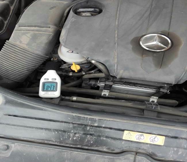 試驗(yàn)設(shè)備:汽車噪音分貝儀(型號(hào)GM1351) 奔馳R350發(fā)動(dòng)機(jī)